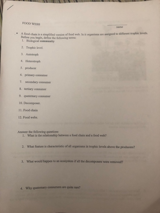 The page also contains names and definitions of terms used to describe the you can also refer to the diagrammatic representations of food chains, food webs and ecological pyramids food web definition. Food chain is a linear sequence of organisms which starts from producer organisms & ends with decomposer species.